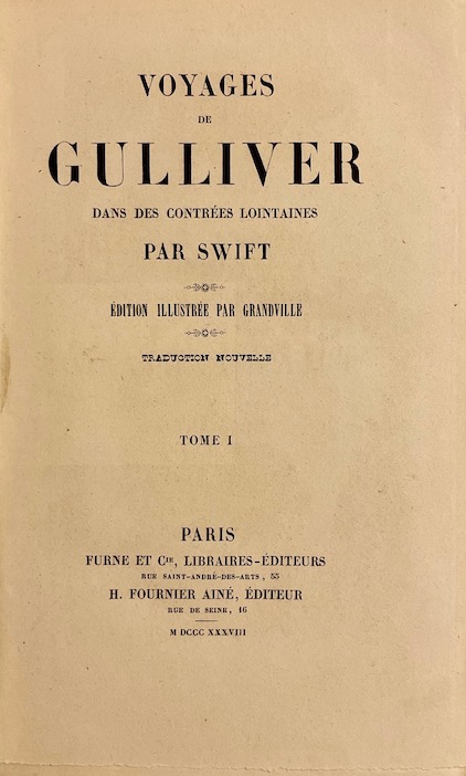 SWIFT (Jonathan) Voyages de Gulliver dans des contrées lointaines. Edition illustrée par Grandville. Traduction nouvelle. Paris, Furne et Cie, H. Fournier Ainé, 1838.