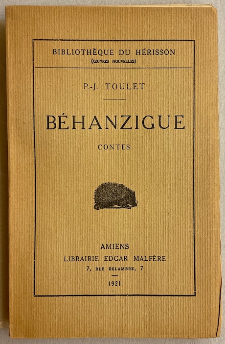 TOULET (Paul-Jean) Béhanzigue. Contes. Paris, Librairie Edgar Malfère (coll. Bibliothèque du Hérisson), 1921.