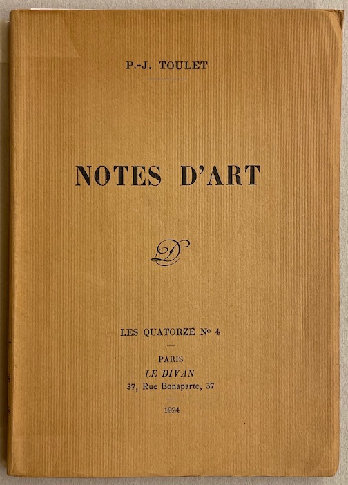 TOULET (Paul-Jean) Notes d'art. Paris, Le Divan (coll. Les Quatorze), 1924.