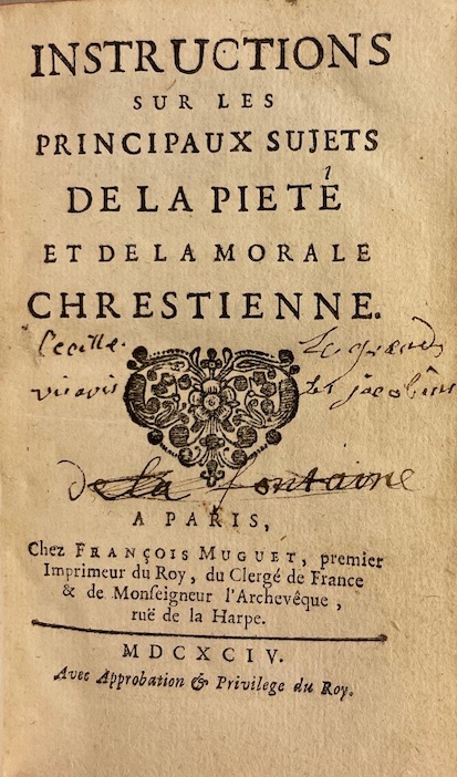 [RANCE (Armand Jean Le Bouthillier de)] Instructions sur les principaux sujets de la piété et de la morale chrestienne. A Paris, Chez François Muguet, 1694.