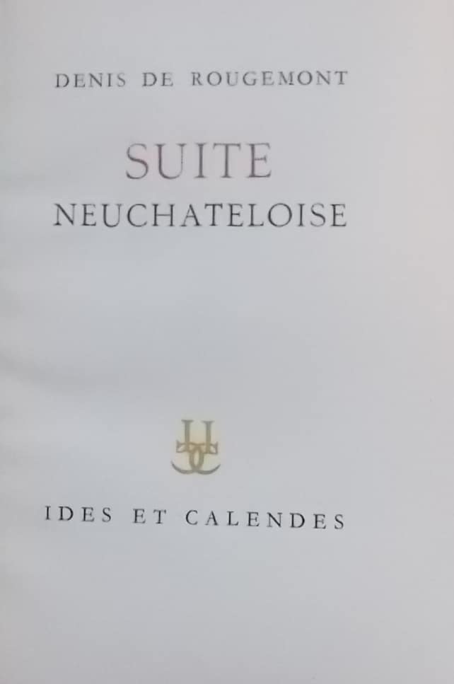 ROUGEMONT (Denis de) Suite neuchâteloise. Neuchâtel, Ides et Calendes, 1948.