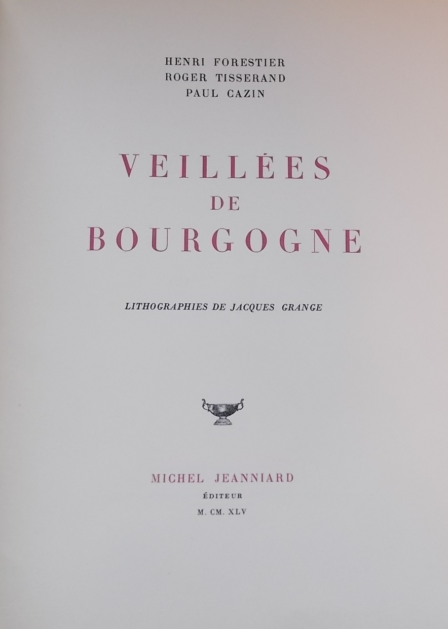 FORESTIER (Henri) - TISSERAND (Roger) - CAZIN (Paul) Veillées de Bourgogne. Sans lieu, Michel Jeanniard, 1945.