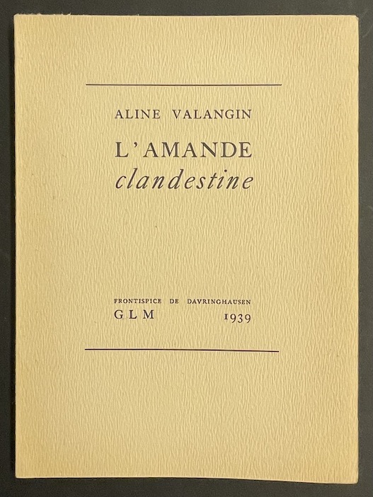 VALANGIN (Aline) L'amande clandestine. Paris, GLM, 1939.