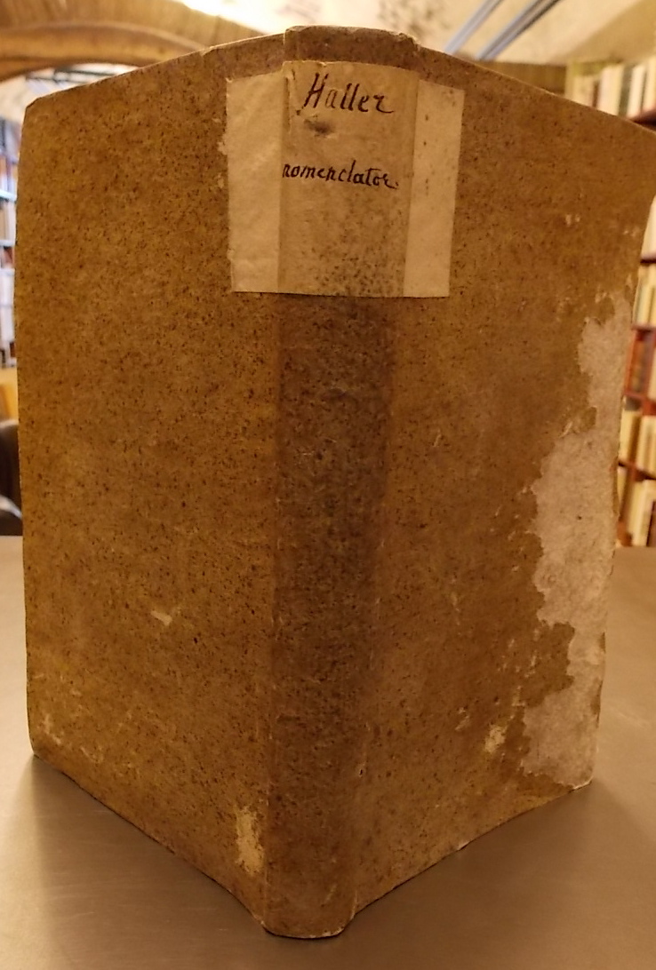 HALLER (Alberto v.) [Albrecht von] Nomenclator ex historia plantarum indigenarum helvetiae. Bernae, Sumptibus Societatis Typographicae, [Bern, Typographische Gesellschaft], 1769.