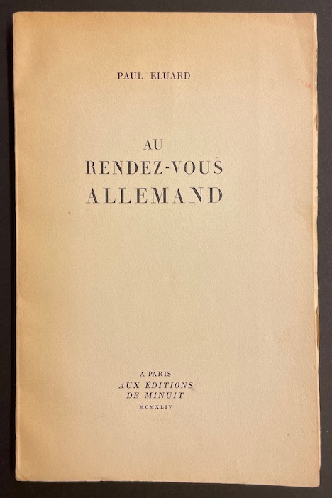 ELUARD (Paul) Au rendez-vous allemand. Paris, Editions de Minuit, 1944.