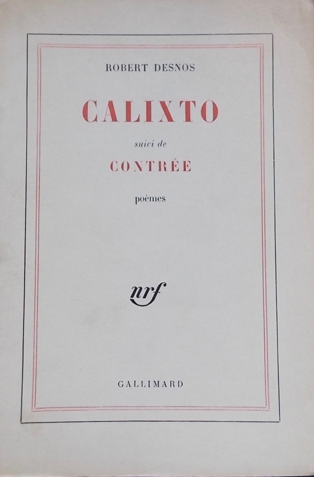 DESNOS (Robert) Calixto, suivi de Contrée. Paris, Gallimard, 1962.