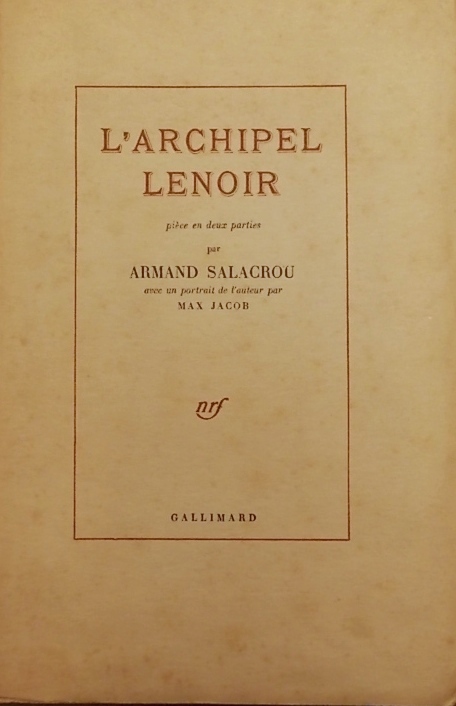 SALACROU (Armand) L'archipel Lenoir, ou il ne faut pas toucher aux choses immobiles. Paris, Gallimard, 1948.