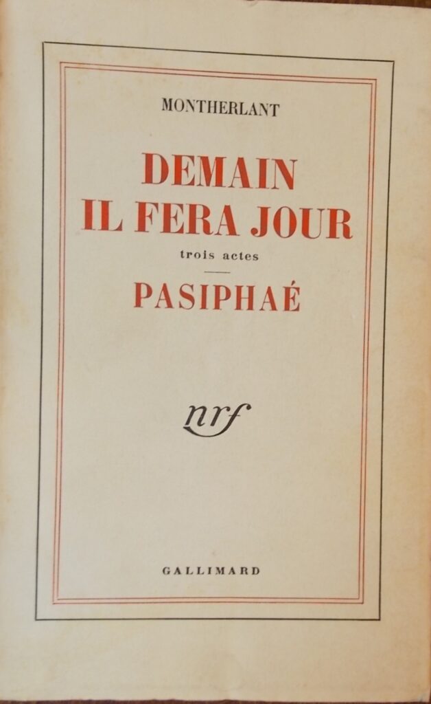 MONTHERLANT (Henry de) Demain il fera jour. - Pasiphaé. Paris, Gallimard (coll. Blanche), 1949.