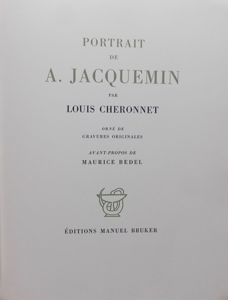 [JACQUEMIN] – CHERONNET (Louis) Portrait de A. Jacquemin. Sans lieu, Manuel Bruker, 1951.
