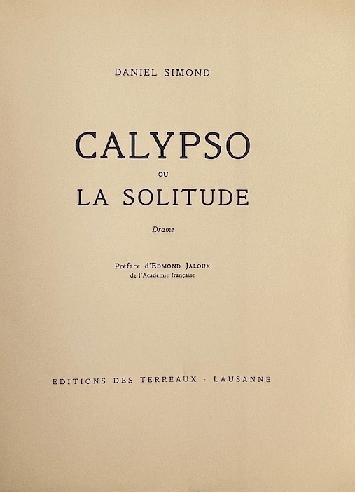 SIMOND (Daniel) Calypso ou la solitude. Drame. Lausanne, Editions des Terreaux, [1948].