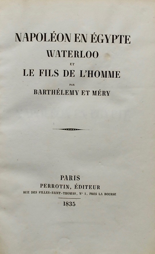 BARTHELEMY (Auguste) / MERY (Joseph) Napoléon en Egypte. Waterloo. Le fils de l’Homme. Paris, Perrotin, 1835.