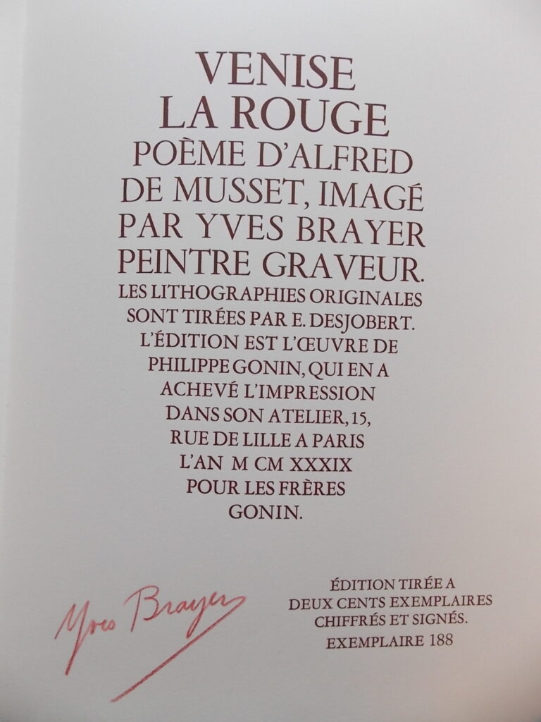 BRAYER (Yves) – MUSSET (Alfred de) Venise la Rouge. Paris, Gonin, 1939.