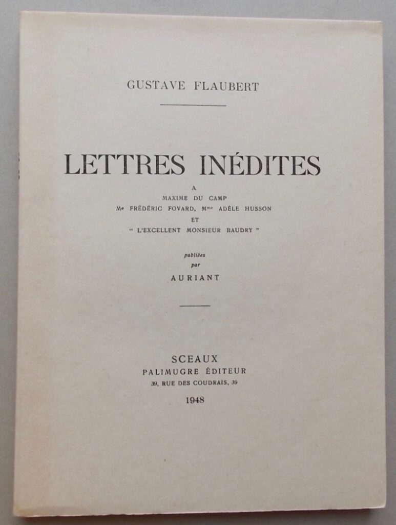 FLAUBERT (Gustave) Lettres inédites à Maxime Du Camp, Me Frédéric Fovard, Mme Adèle Husson et l’excellent monsieur Baudry. Sceaux, Palimugre Editeur, 1948.