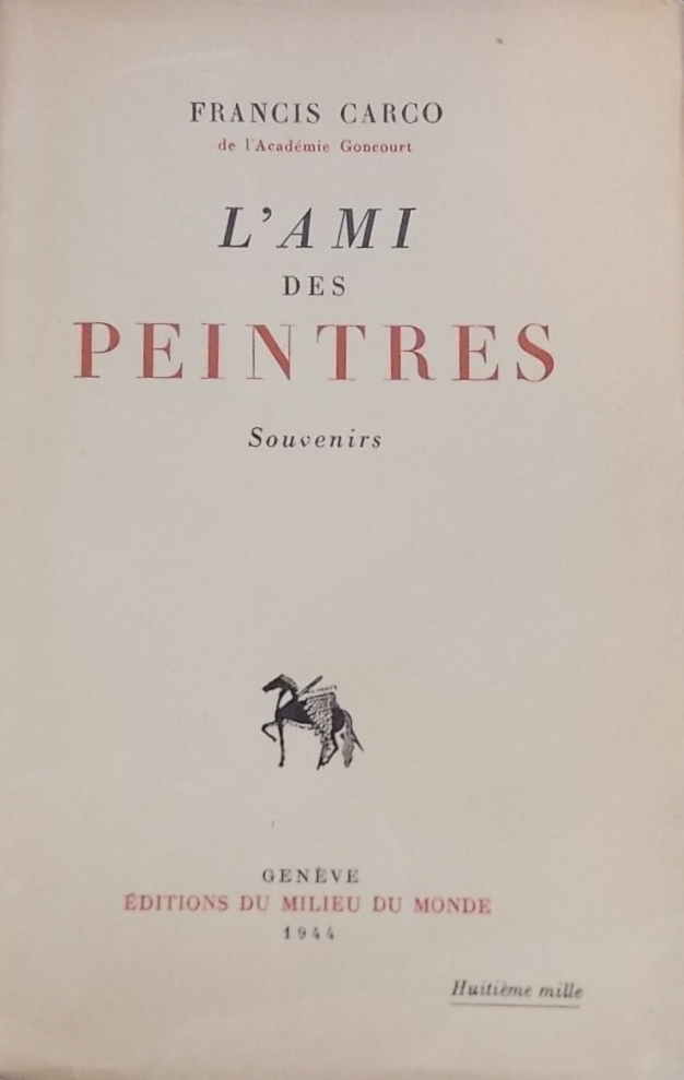 CARCO (Francis) L’ami des peintres. Souvenirs. Genève, Milieu du Monde, 1944.