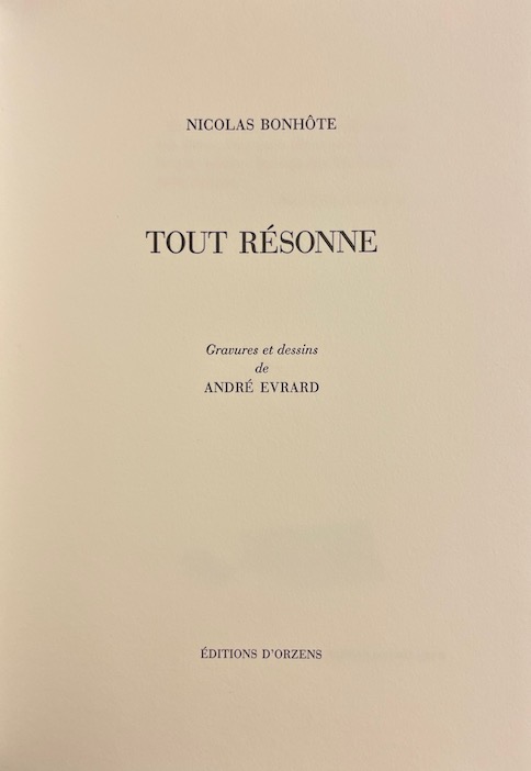 BONHOTE (Nicolas) – EVRARD (André) Tout résonne. Lutry, Editions d’Orzens, 2002.