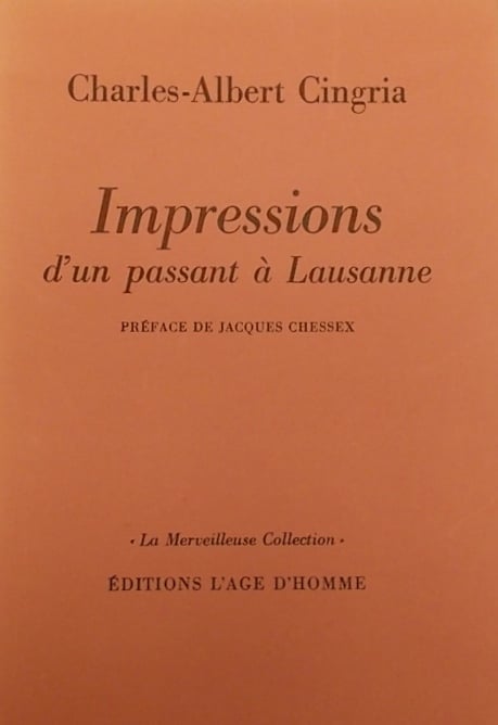 CINGRIA (Charles-Albert) Impressions d’un passant à Lausanne. Lausanne, L’Age d’Homme (coll. La Merveilleuse Collection), 1966.