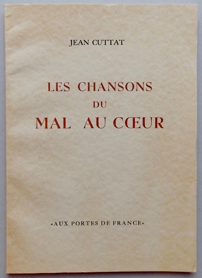 CUTTAT (Jean) Les chansons du mal au coeur. Porrentruy, Aux Portes de France, 1942.