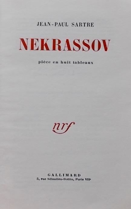 SARTRE (Jean-Paul) Nekrassov. Pièce en huit tableaux. Paris, Gallimard, 1956.