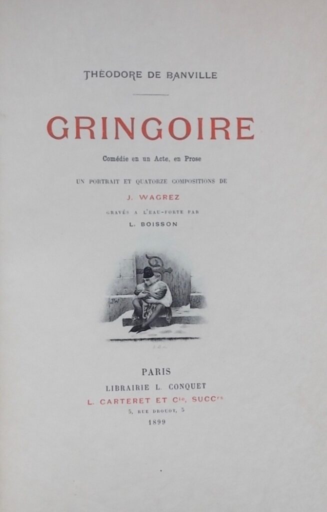 BANVILLE (Théodore de) Gringoire. Comédie en un acte, en prose. Paris, Librairie L. Conquet – L. Carteret et Cie, 1899.