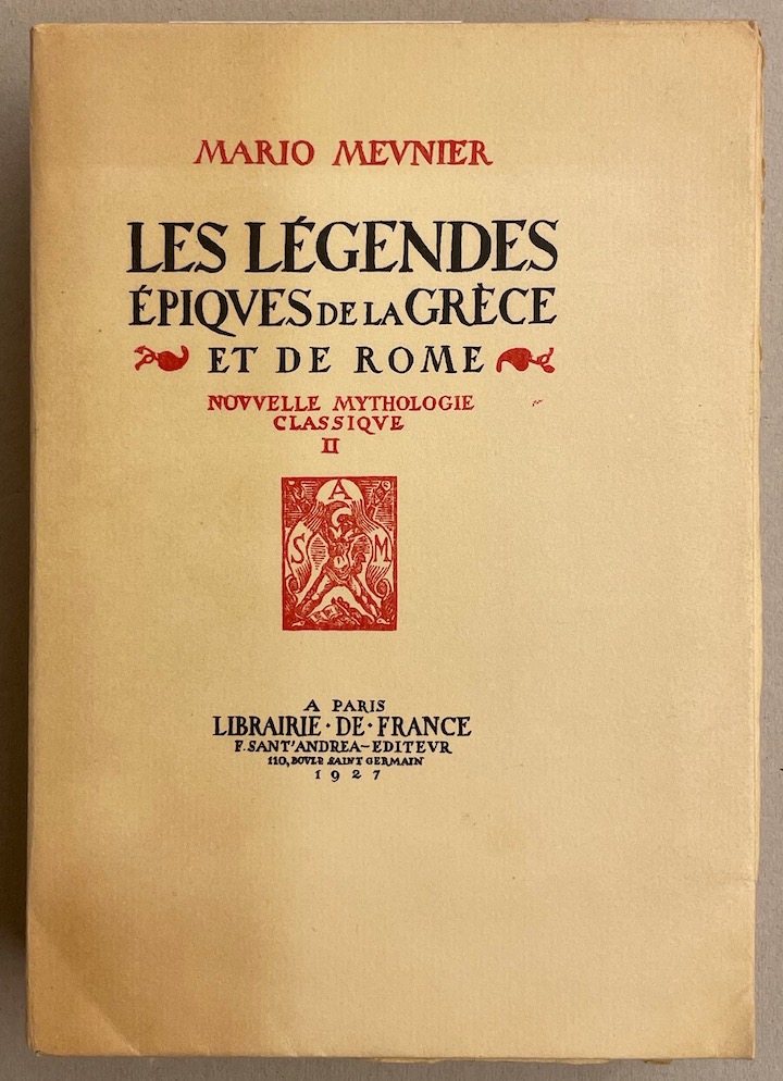 MEUNIER (Mario) Les légendes épiques de la Grèce et de Rome (Nouvelle mythologie classique II). Paris, Librairie de France, 1927.