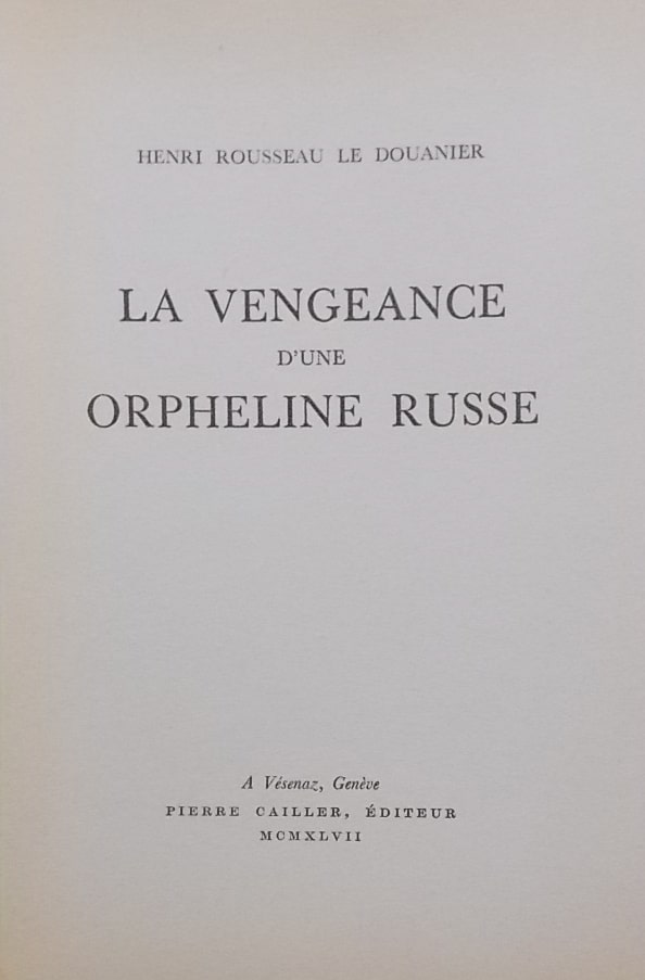 ROUSSEAU (Henri, dit le Douanier) La vengeance d’une orpheline russe. Drame en 5 actes et 19 tableaux. Genève, Pierre Cailler (coll. Ecrits et Documents de Peintres), 1947.