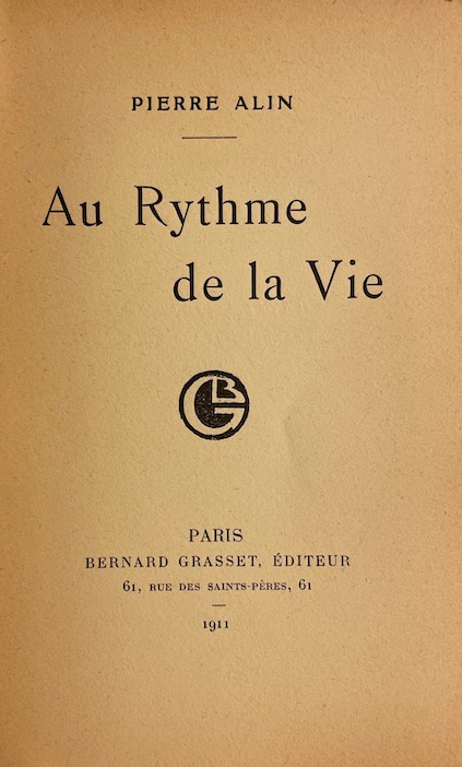 ALIN (Pierre) Au rythme de la vie. Poèmes. Paris, Bernard Grasset, 1911.