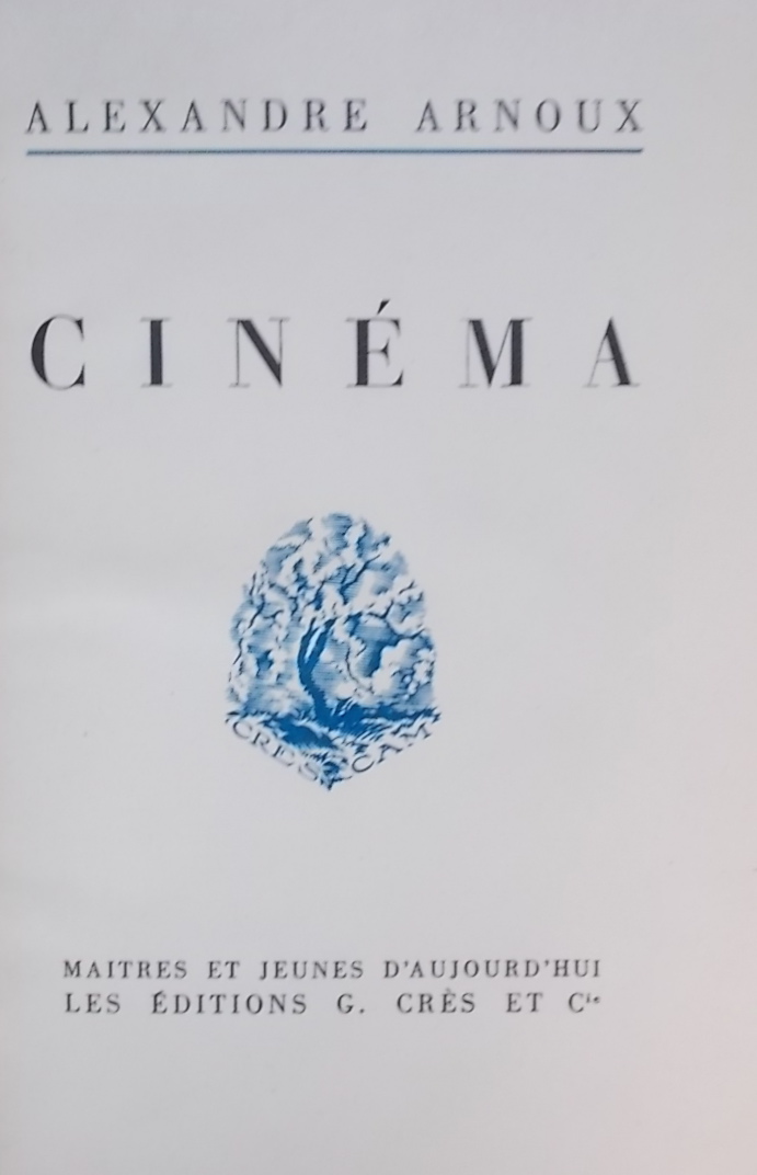 ARNOUX (Alexandre) Cinéma. Paris, G. Crès et Cie (coll. Maitres et Jeunes d’aujourd’hui), 1929.