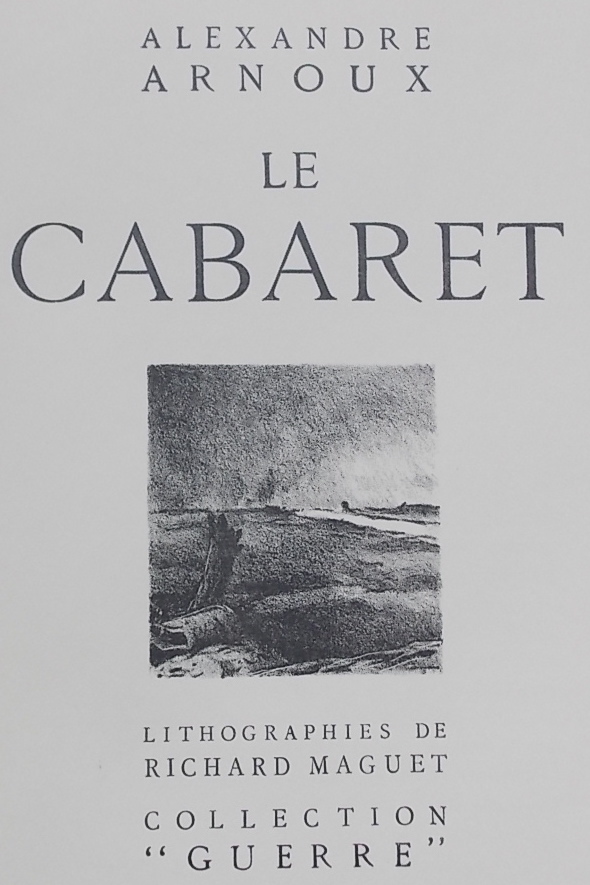 Edition numérotée 1/600 exemplaires sur vélin de Rives. Illustré de 22 lithographies originales hors texte en noir de Richard Maguet tirées par Mourlot Frères. « Les dessins sur pierre que fit Richard Maguet pour Le Cabaret d’Alexandre Arnoux sont parmi les plus dignes témoignages que nous possédons sur la guerre 1914 » Henry Portal.