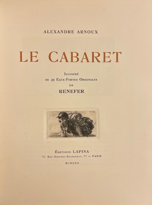 ARNOUX (Alexandre) Le cabaret. Paris, Edition Lapina, 1922.