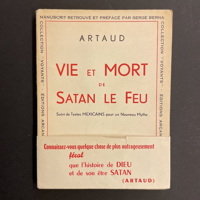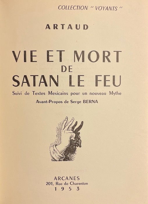 ARTAUD (Antonin) Vie et mort de Satan le Feu. Suivi des textes mexicains pour un Nouveau Mythe. Avant-propos de Serge Berna. Paris, Arcanes (coll.Voyants), 1953.