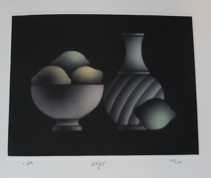 Edition limitée à 126 exemplaires. Rassemble 4 gravures à la manière noire en couleurs (186×140) de Mario Avati, toutes titrées, signées et justifiées par l’artiste à la mine de plomb. En excellente condition.