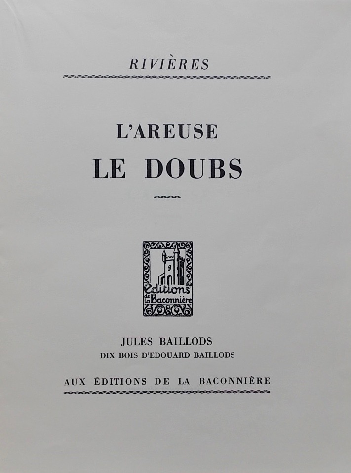 BAILLODS (Jules) Rivières. L’Areuse, le Doubs. Neuchâtel, Baconnière, 1936.
