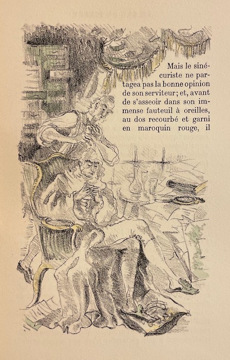 Un des 200 exemplaires numérotés sur papier du Marais, seul tirage avec 400 vélins d’Arches à la forme. Illustés de lithographies originales réhaussées d’Elianes Bonabel, tirées par Mourlot. Bords de la couverture jaunis, intérieur de première fraicheur.
