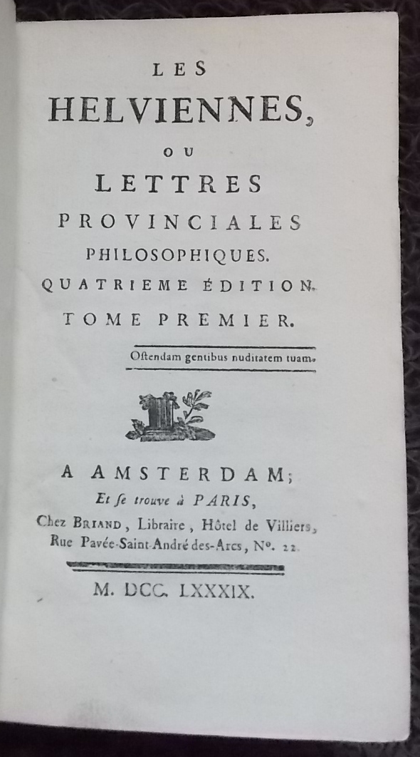 ![[BARRUEL (Augustin)] Les Helviennes, ou lettres provinciales philosophiques. A Amsterdam, et se trouve à Paris chez Briand, 1788-1789. – Image 2](https://cabinetamateur.ch/wp-content/uploads/2025/12/38894_2.jpg)