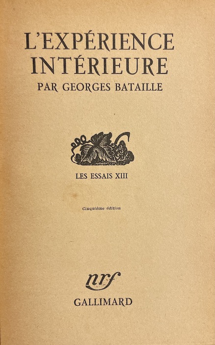 BATAILLE (Georges) L’expérience intérieure. Paris, Gallimard (coll. Les Essais), [1943].