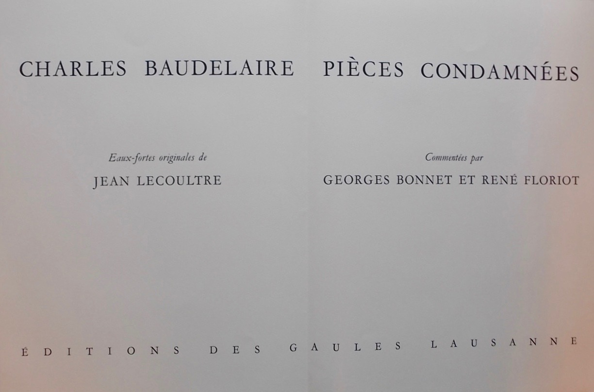 BAUDELAIRE (Charles) – LECOULTRE (Jean) Pièces condamnées. Lausanne, Editions des Gaules, 1963.