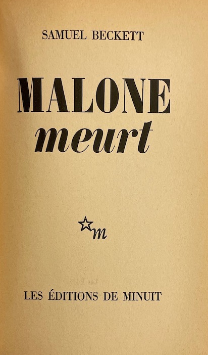 BECKETT (Samuel) Malone meurt. Roman. Paris, Editions de Minuit, 1951.