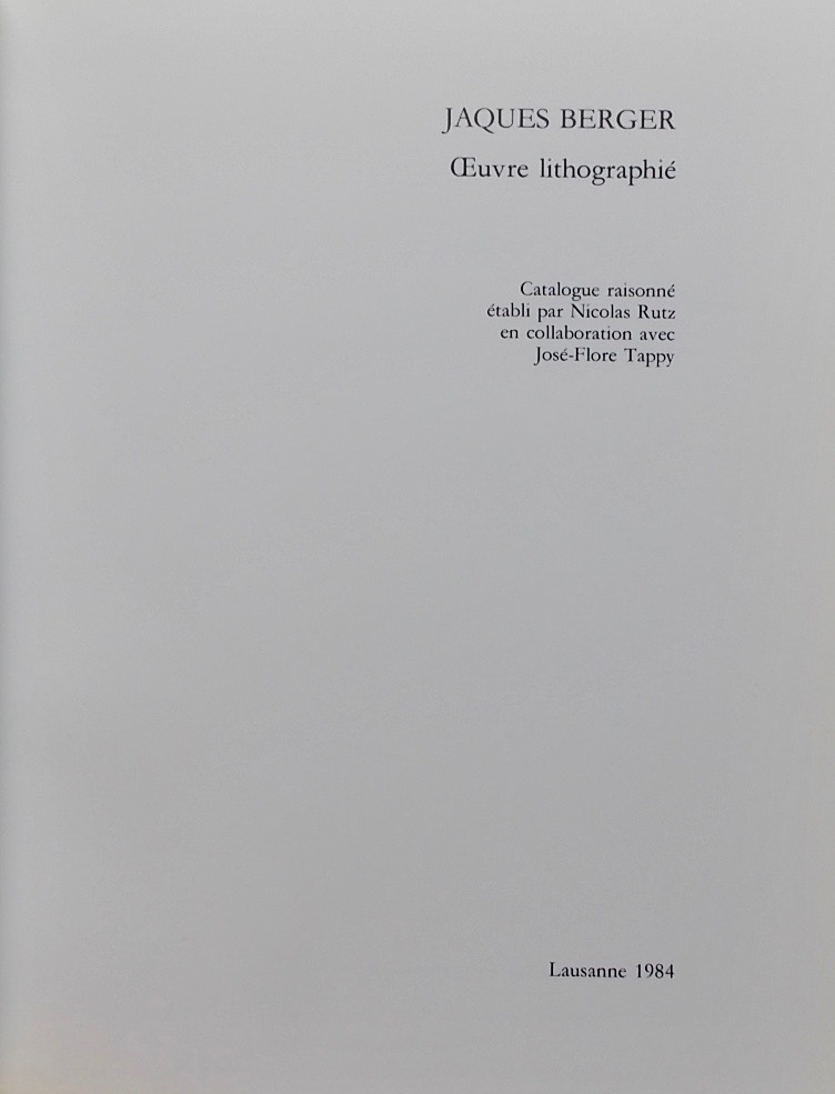 ![[BERGER] - RUTZ (Nicolas) & TAPPY (José-Flore) Jacques Berger. Oeuvre lithographié. Lausanne, Editions Prolitho, 1984. – Image 3](https://cabinetamateur.ch/wp-content/uploads/2025/11/38240_3.jpg)
