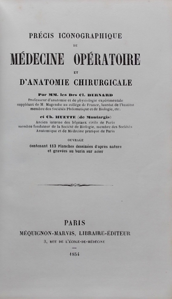 BERNARD (Claude) & HUETTE (Ch.) Précis iconographique de médecine opératoire et d’anatomie chirurgicale. Paris, Méquignon-Marvis, 1854.