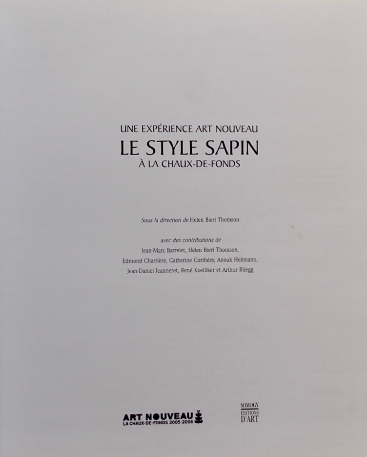 BIERI THOMSON (Helen) Une expérience art nouveau. Le style Sapin à La Chaux-de-Fonds. Paris, Somogy, 2006.