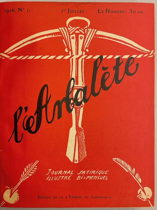 BILLE (Edmond) et al. L’Arbalète. Journal satirique suisse. Lausanne, Edition de la Tribune de Lausanne, 1916-1917.