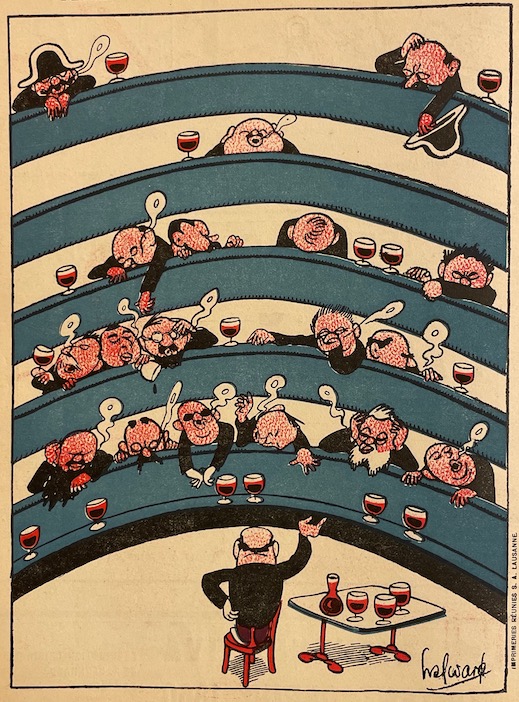Collection complète de ce célèbre journal satirique paru en pleine première gruerre mondiale sous l’impulsion d’Edmond Bille. [1ère année n° 1 – 22 (1 juillet 1916 – 15 juin 1917) + 2ème année n° 1 -12 (1 juillet 1917 – Noël 1917]. Illustrations de Bille, Charles Clément, V. Gottofrey, H. Hayward, etc… Les auteurs des textes sont plus difficiles à identifier, mais il semble établi que Paul Budry, Henri Roorda (Balthasar), l’ami neuchâtelois Maurice Jeanneret y aient participé. Exemplaire en excellente condition.
