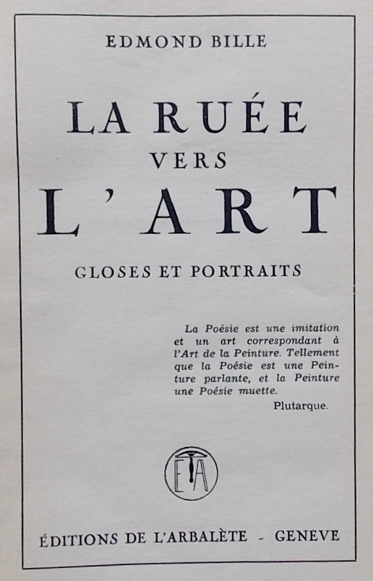 BILLE (Edmond) La ruée vers l’art. Genève, L’Arbalète,1947.