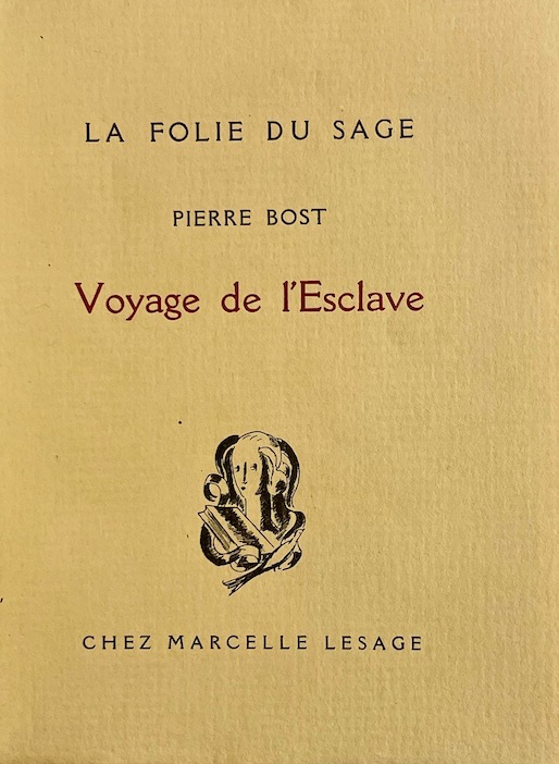 BOST (Pierre) Voyage de l’Esclave. Paris, Marcelle Lesage (coll. La Folie du sage), 1926.