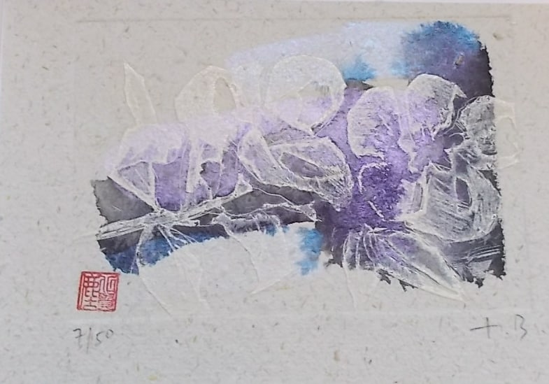 Edition originale numérotée 1/50 exemplaires sur papier Danendruck (seul tirage avec 16 exemplaires d’artiste sur le même papier). Une eau-forte originale rehaussée et 6 photographies (dont 3 sur la couverture) de Thierry Bourquin accompagnent des textes de 3 lignes, s’approchant des haïkus, de son cousin Yves. A l’état de neuf.