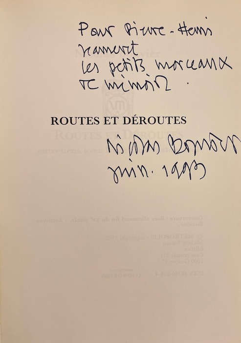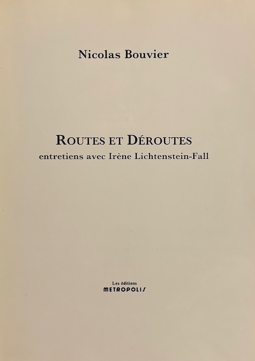 BOUVIER (Nicolas) Routes et déroutes. Entretiens avec Irène Lichtenstein-Fall. Genève, Metropolis, 1992.