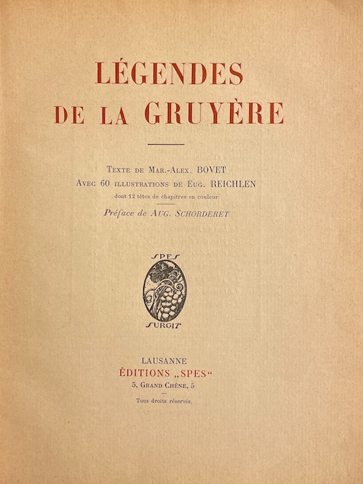 BOVET (Mar.-Alex.) Légendes de la Gruyère. Lausanne, Spes, [1919].