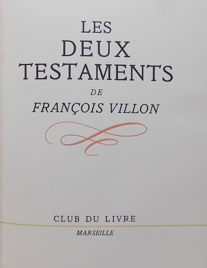[BRAYER] – VILLON (François) Les deux testaments. Marseille, Club du Livre, 1944.