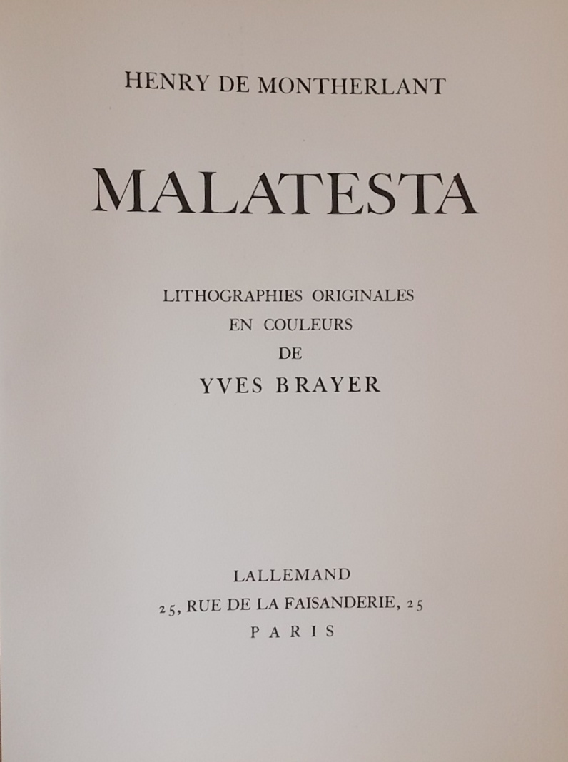 ![[BRAYER (Yves)] - MONTHERLANT (Henry de) Malatesta. Paris, Lallemand, 1947. – Image 2](https://cabinetamateur.ch/wp-content/uploads/2025/10/37821_2.jpg)
