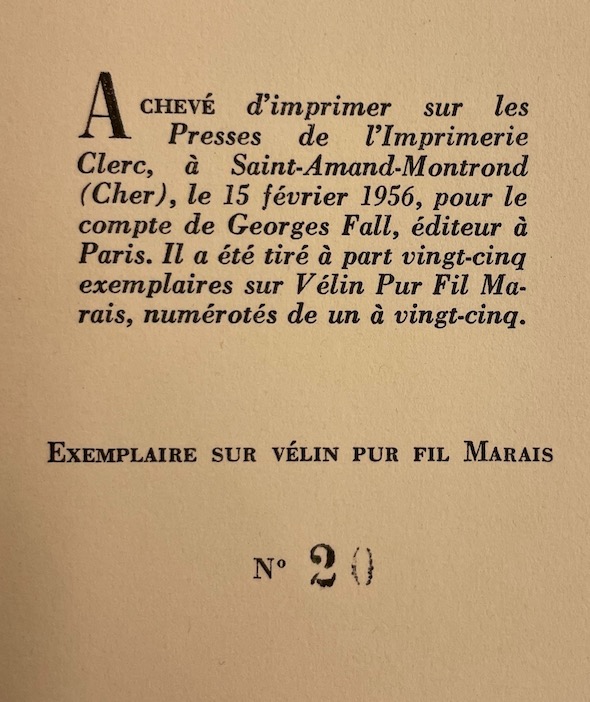 Edition originale. Un des 25 exemplaires sur vélin pur fil Marais (seul grand papier).